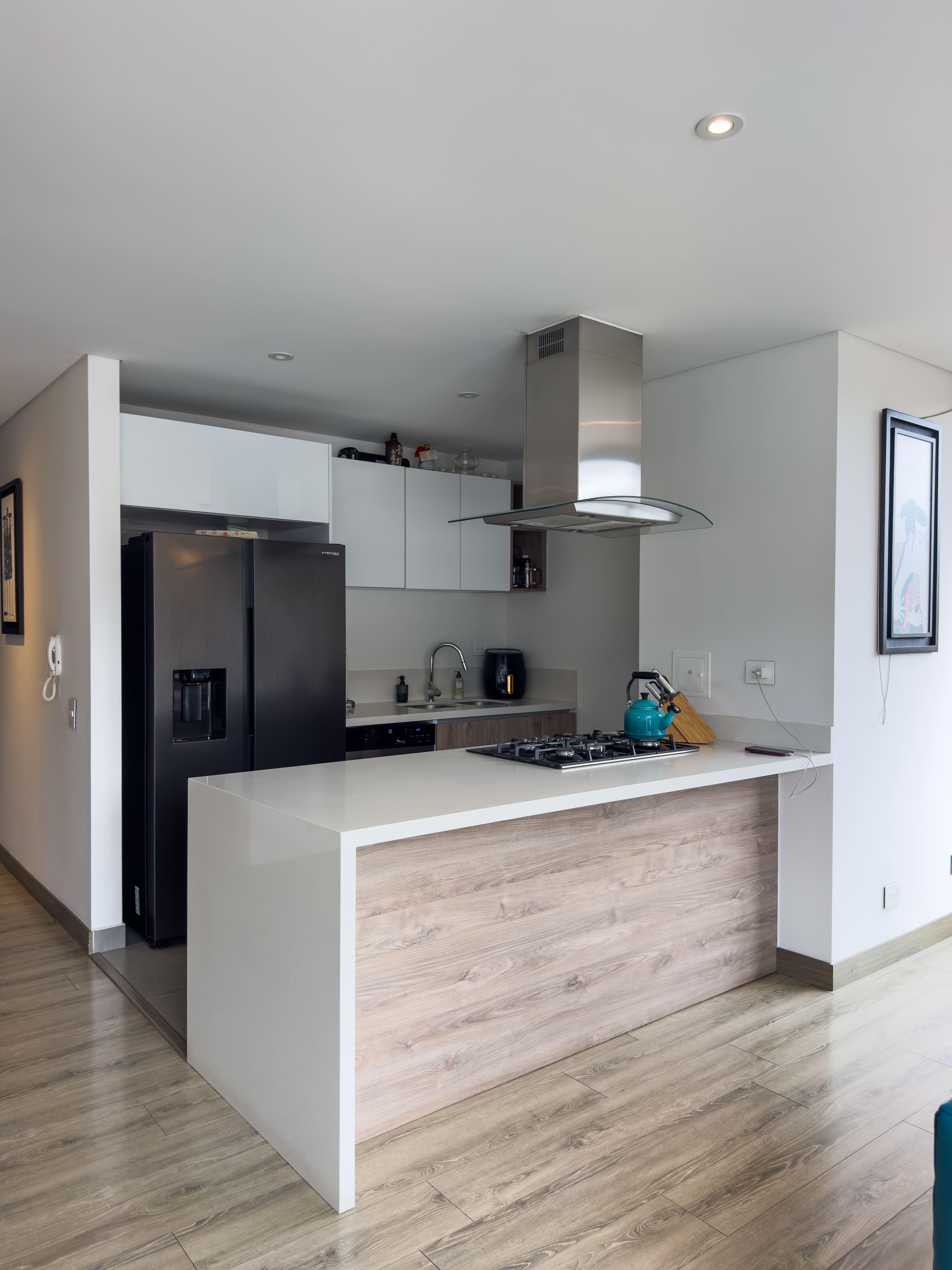 Cuenta con 3 habitaciones, cada una con su propio baño, lo que garantiza privacidad y funcionalidad para toda la familia. La zona social integra sala y comedor con balcón y chimenea, creando un ambiente acogedor y perfecto para recibir invitados. La cocina abierta aporta amplitud y modernidad, y se complementa con una zona de lavandería independiente y un espacio ideal para estudio o home office.