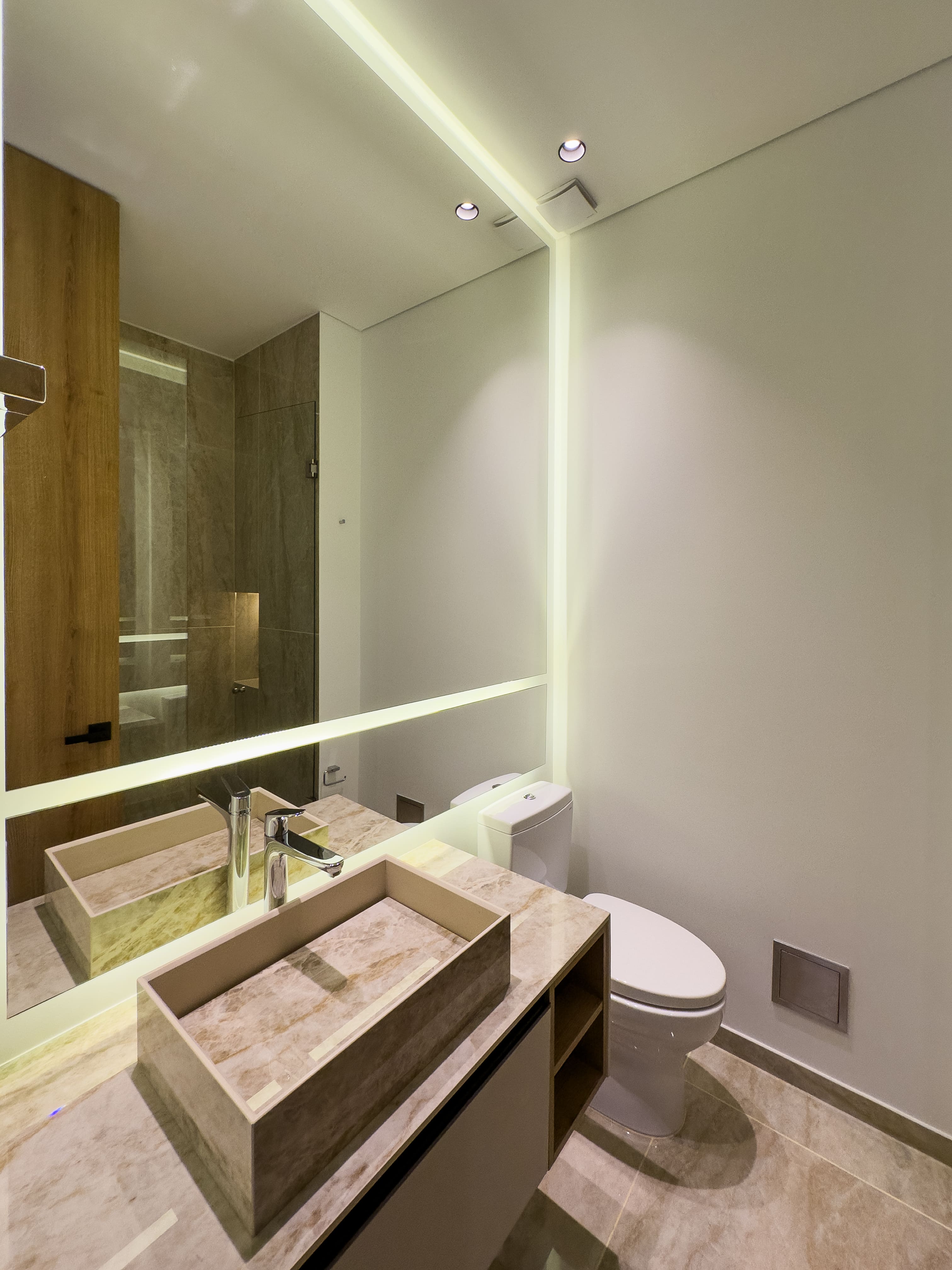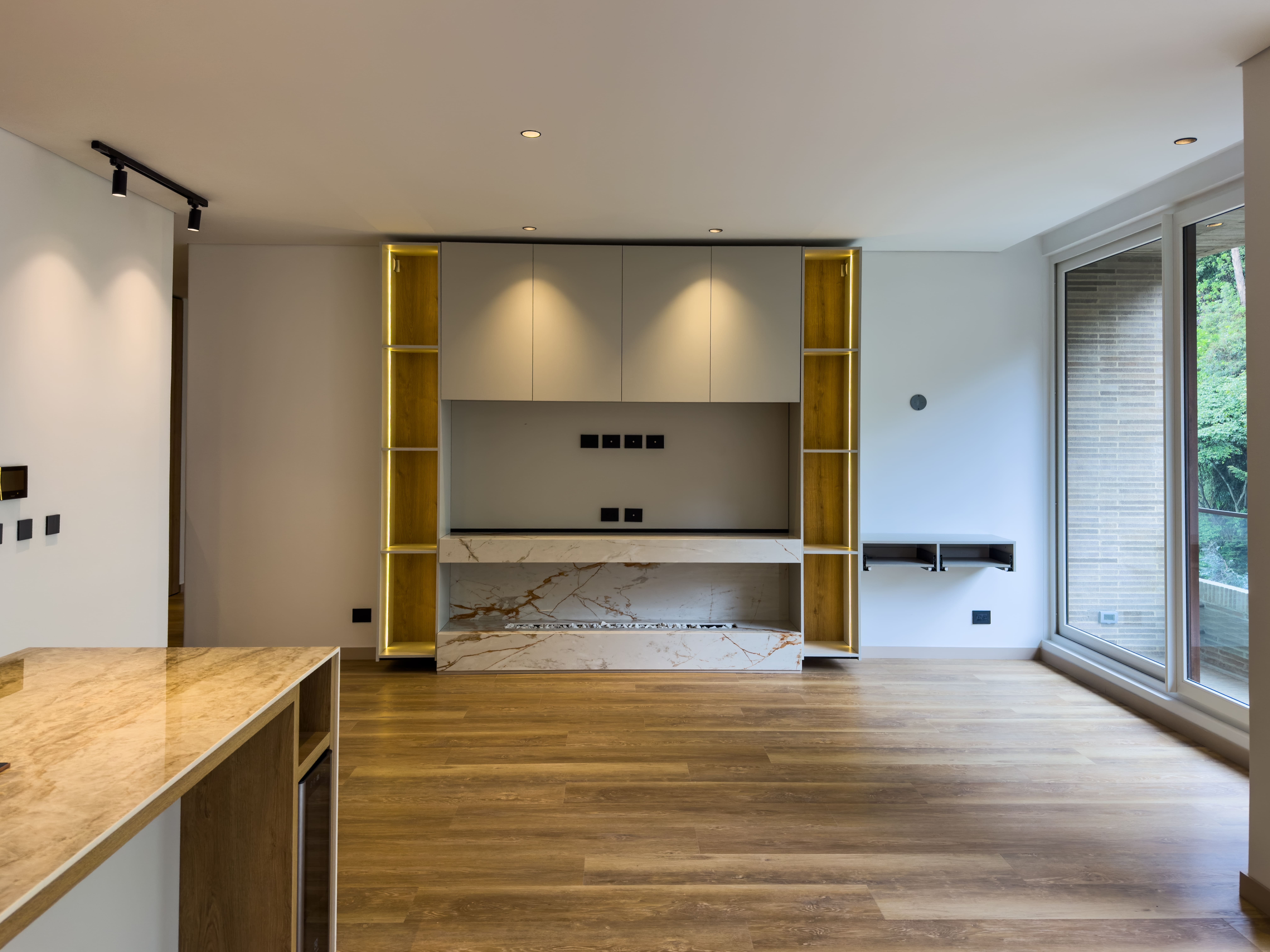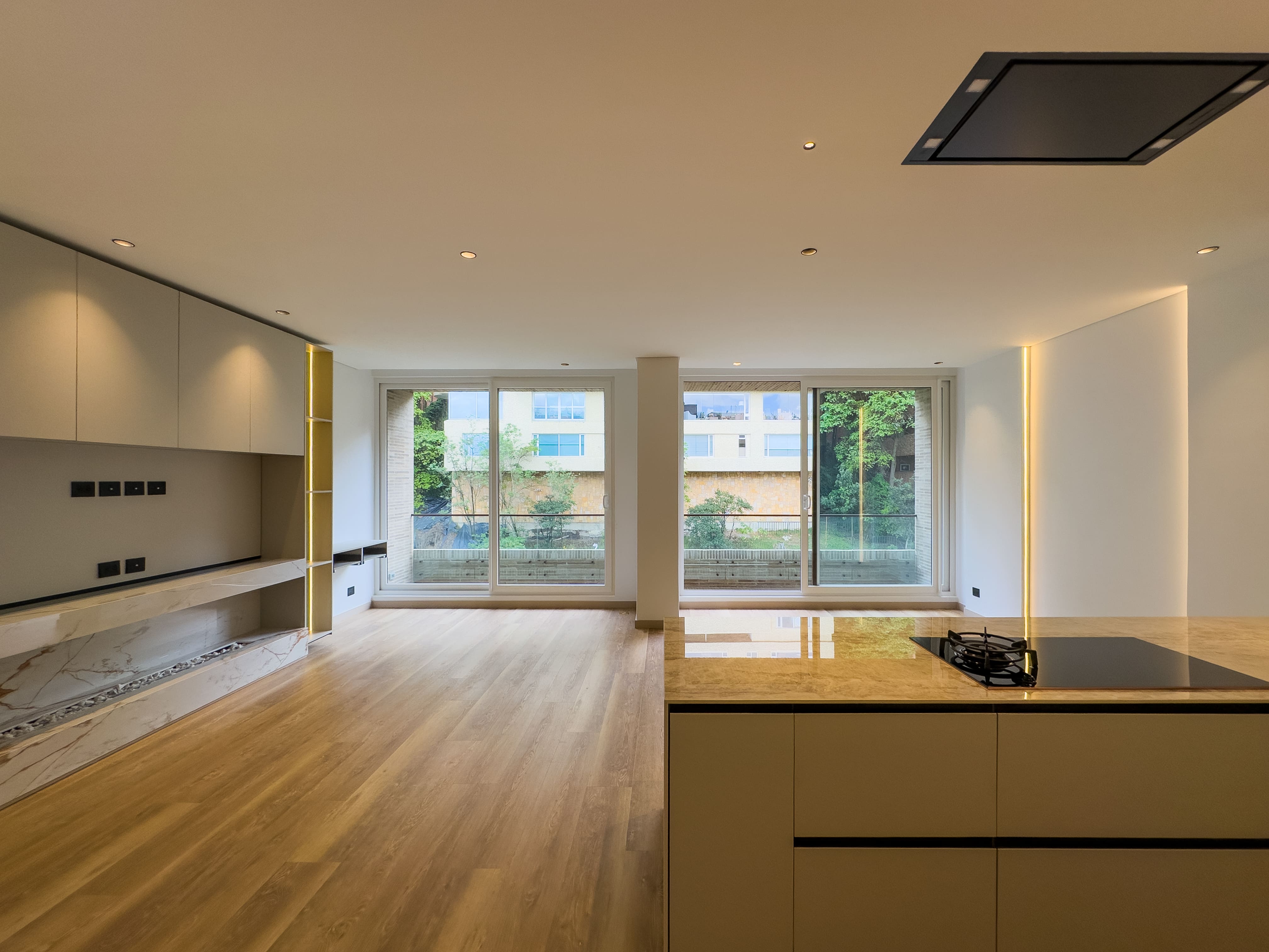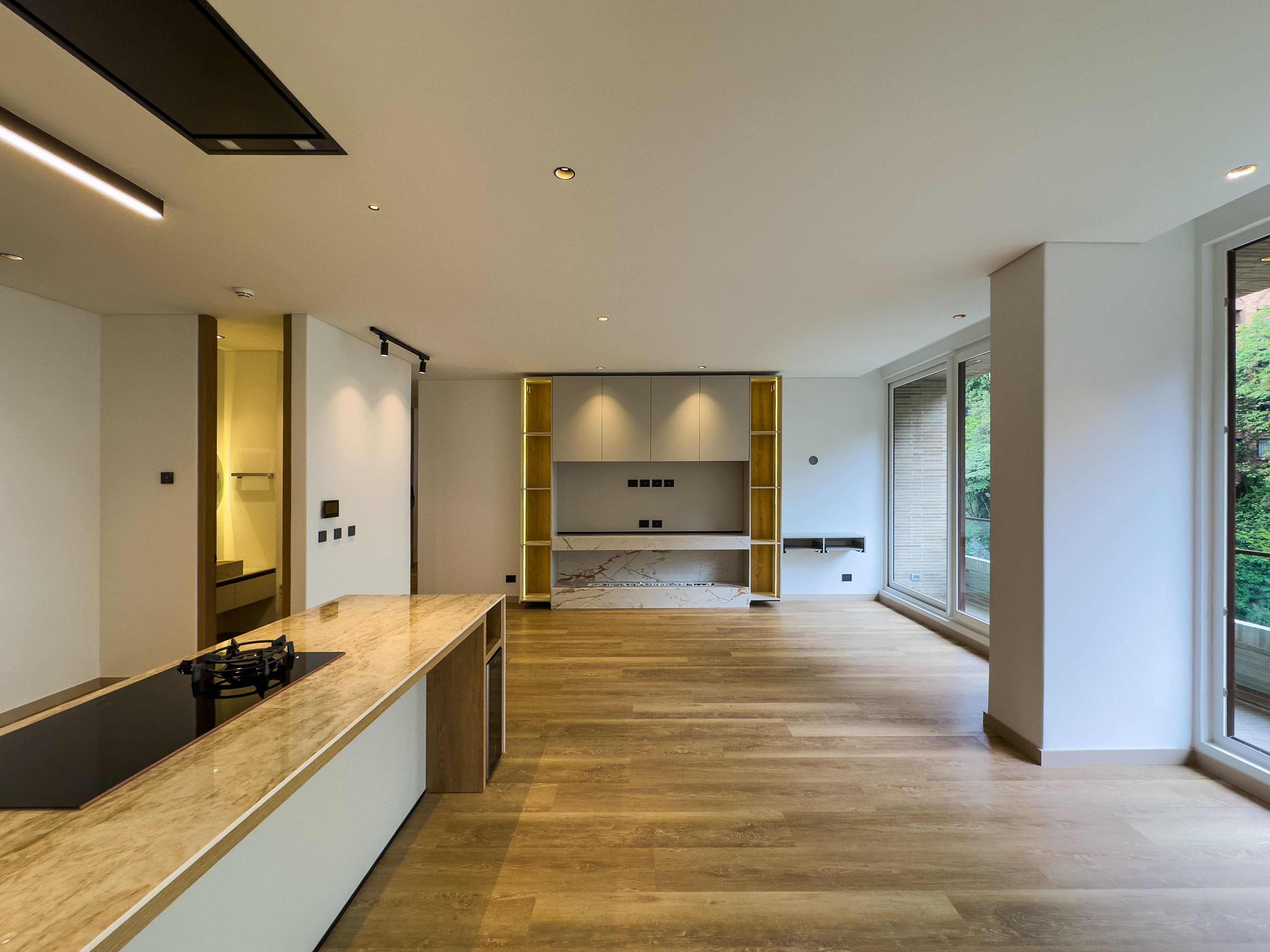 Desde la entrada se perciben sus acabados de lujo, diferentes y cuidadosamente seleccionados, que le dan carácter y personalidad al espacio. La zona social integra sala y comedor en un ambiente amplio y luminoso, con salida a un balcón que aporta luz natural y un espacio ideal para desconectarse o compartir.