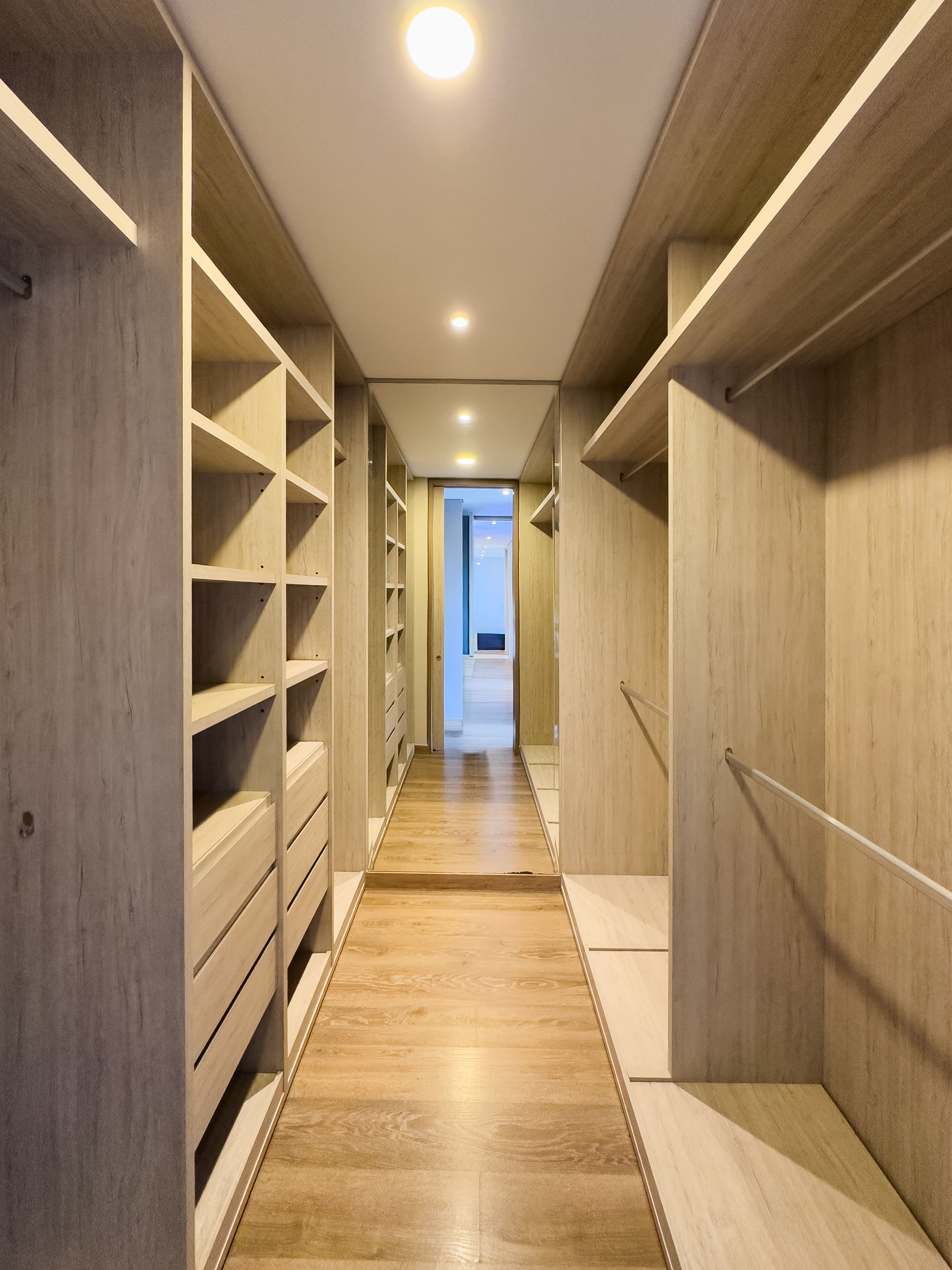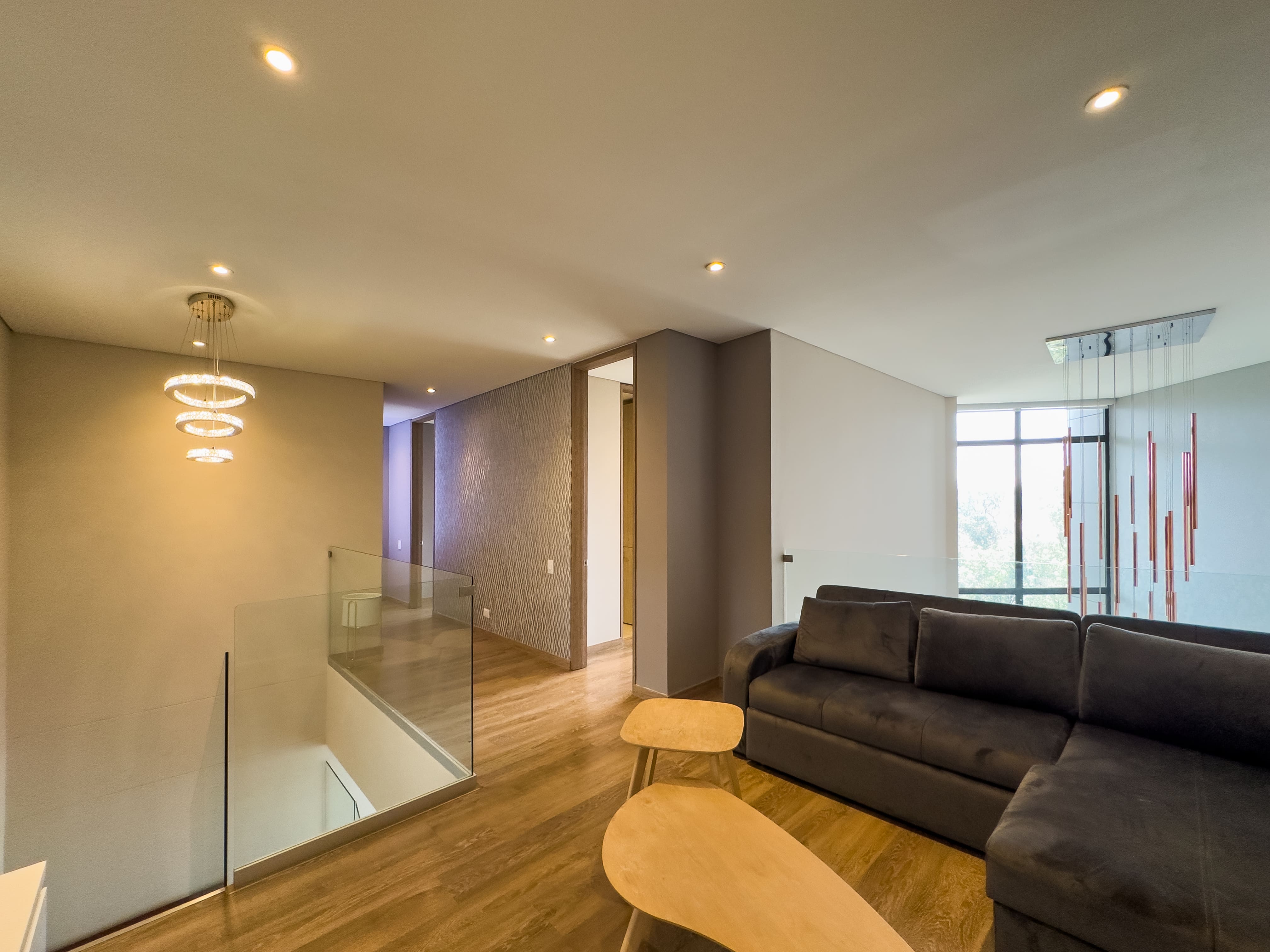 El segundo nivel alberga el área privada, con un hall de habitaciones que distribuye hacia tres habitaciones, cada una con su baño privado. La habitación principal se destaca por su walking closet amplio y un balcon privado, que aporta privacidad y confort.
