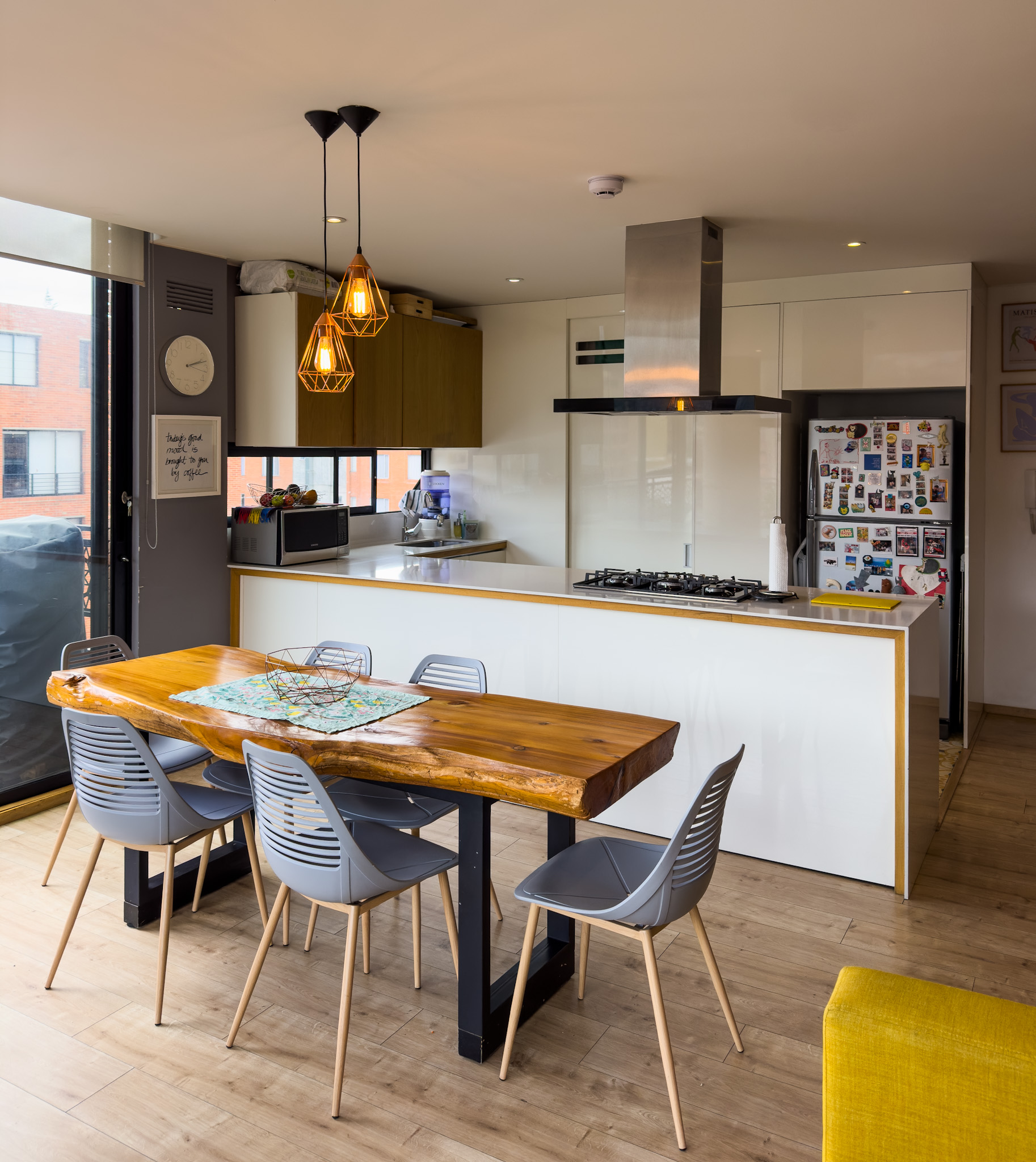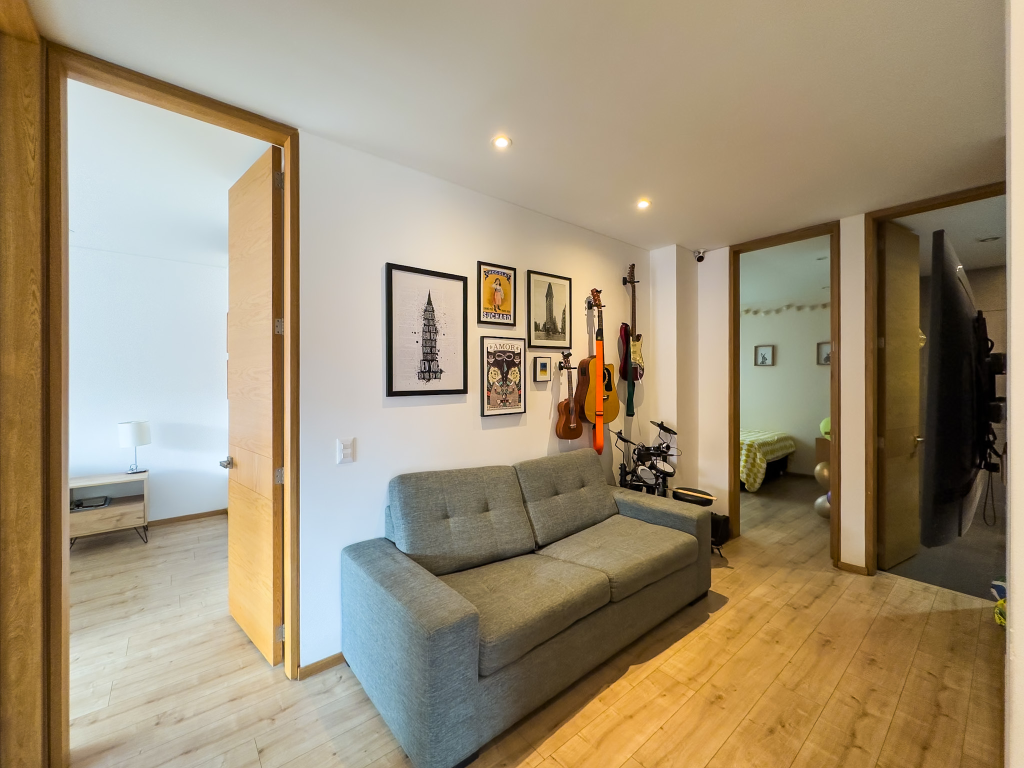 La zona social integra sala y comedor con acceso a balcón, generando un espacio acogedor y luminoso. Adicionalmente, dispone de family room, perfecto como sala de TV u oficina en casa, y zona de lavandería independiente.