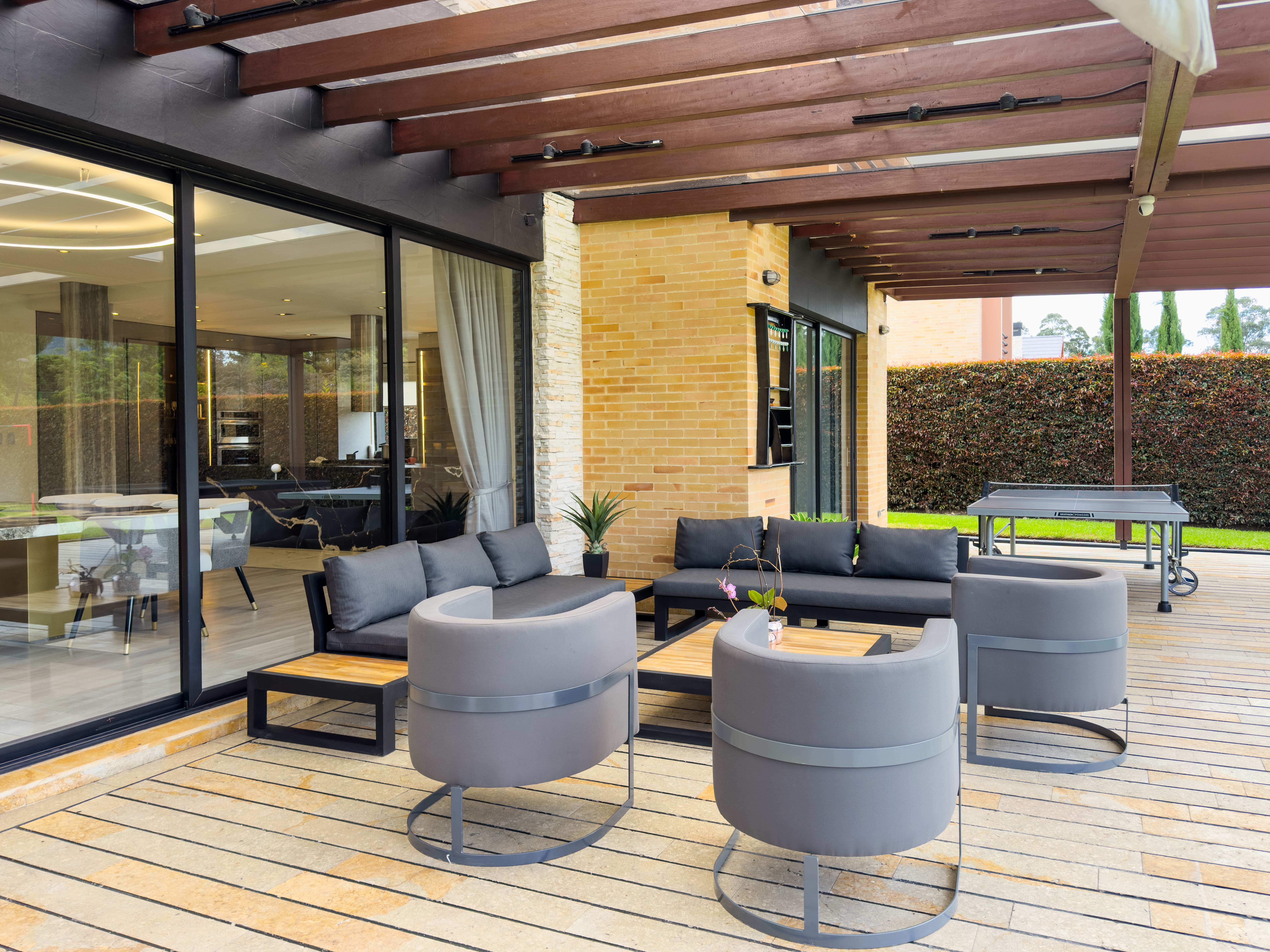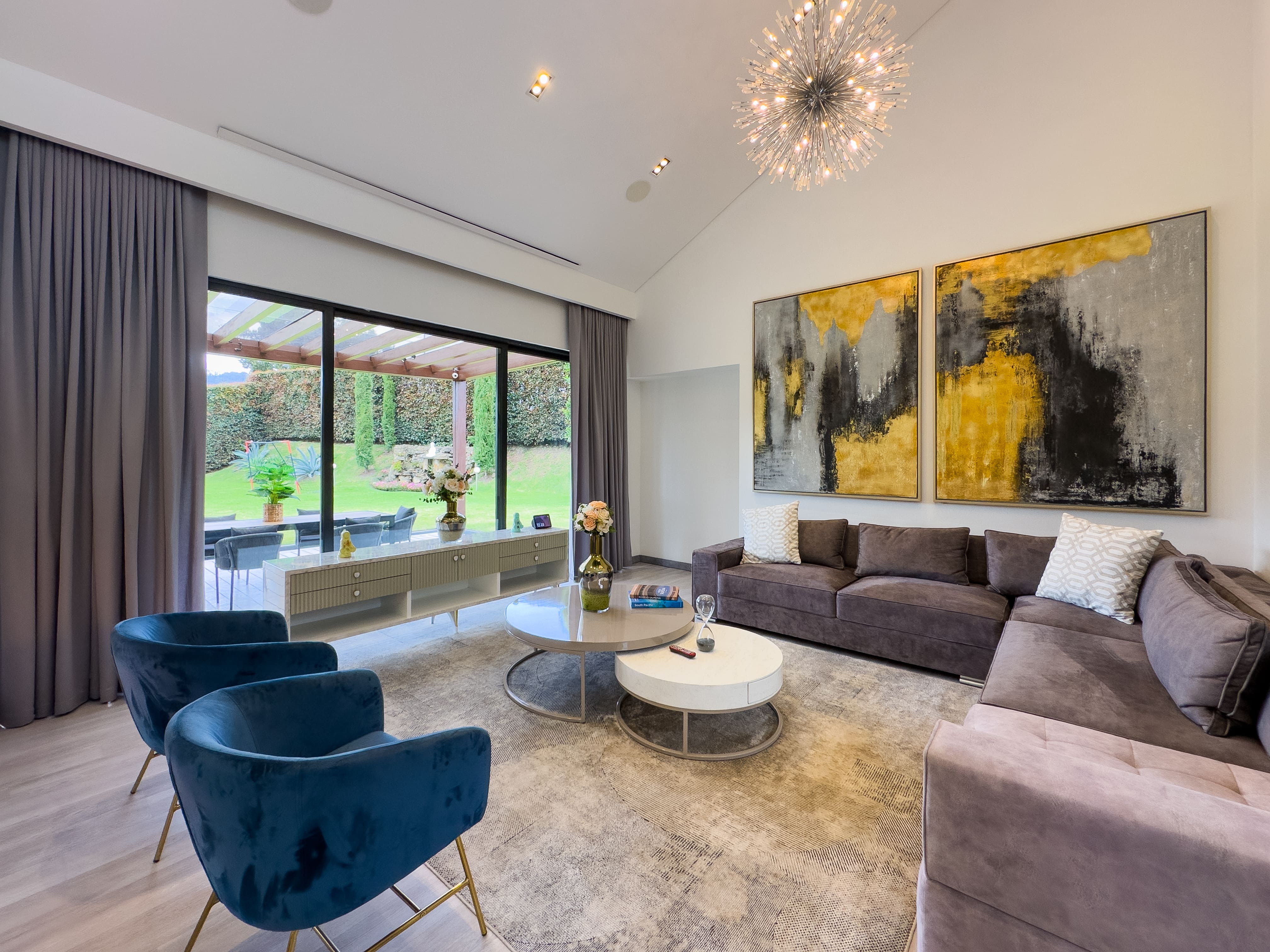 En el corazón de Hato Grande Reservado, esta residencia esquinera redefine la idea de amplitud y privacidad en la sabana. Construida en 2013 y completamente remodelada en 2023, se levanta sobre un lote de 1.643 m², uno de los más generosos del conjunto. Su arquitectura privilegia la relación entre interior y exterior, con 450 m² de área privada, donde 370 m² construidos se extienden hacia una terraza de 80 m² cubierta por pérgola, pensada para vivir el paisaje con calma y elegancia.